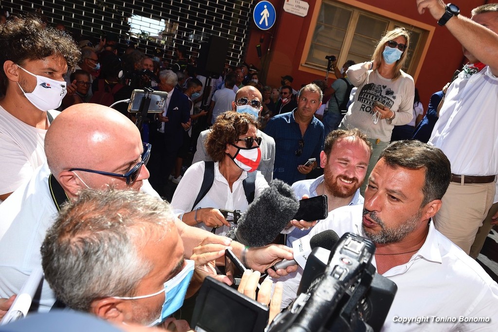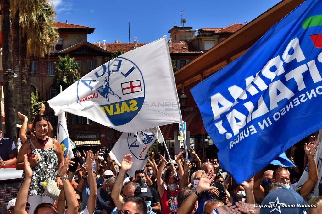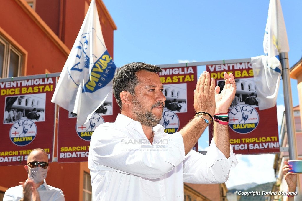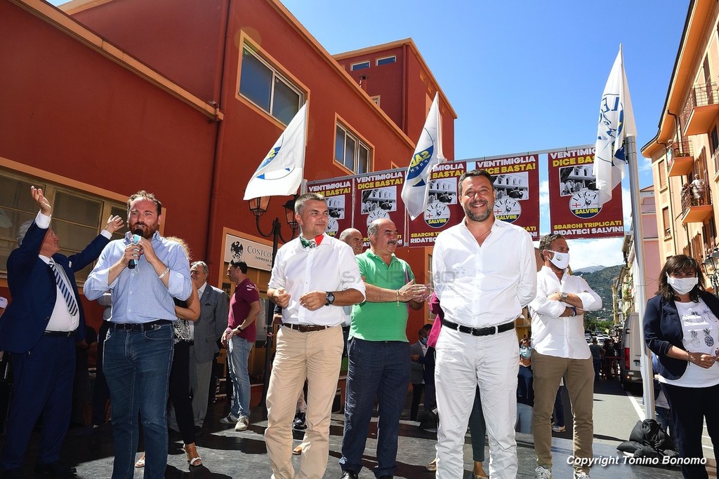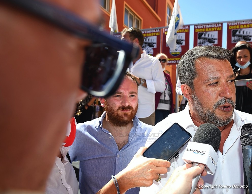 A Ventimiglia è stata la giornata della visita di Matteo Salvini. Il leader della Lega ha incontrato la cittadinanza parlando dal palco di via Aprosio e non sono mancati i contestatori che hanno fischiato per tutta la durata del suo intervento. Da sottolineare anche la totale mancanza di distanziamento tra il pubblico e le mascherine che per molti ormai sono diventate un optional.