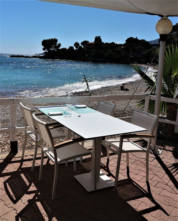 Il ristorante ha una impostazione “bistrot”, quindi meno informale e impegnativa, apparecchiatura semplice, ma sempre con classe con le tovagliette in cotone che richiamano il colore turchese del mare e tovaglioli in stoffa.