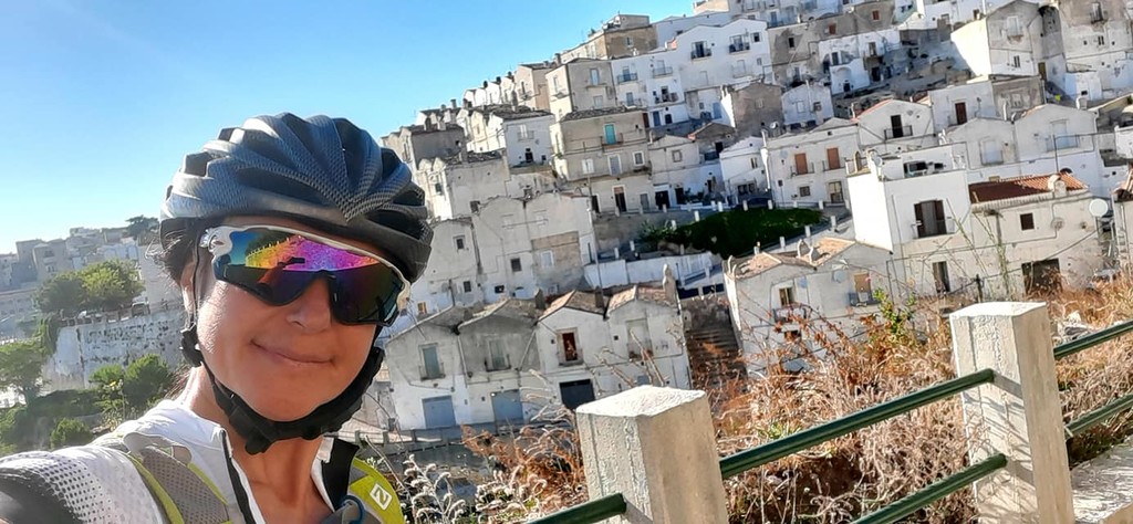 Com'è nata l'idea? "Per caso, ne avevo programmato un altro da Berlino a San Pietrobrugo, ma a causa del covid non ho potuto farlo. Poi un giorno, su Facebook una mia amica che non vedevo da tanti anni e che oggi vive a Gallipoli mi ha proposto di andare a trovarla. Così, dopo aver studiato la traccia ho deciso di cambiare rotta. Non avevo mai visitato il sud Italia, ma a dirla tutta non conoscevo molti posti, vivo dal 2001 a Imperia, anni prima ho abitato in Toscana per un anno, mi piaceva l'idea di attraversare il paese da nord a sud, rivedere i posti dove sono stata e scoprire quelli che non conoscevo. In Abruzzo ho anche rivisto un vecchio amico dei tempi in cui abitavo a Monaco di Baviera che non vedevo da sedici anni. Quello che mi ha colpito è stato visitare i paesini, che hanno una loro caratteristica particolare, e il contatto con le persone del posto è stato incredibile. Non so se sono stata fortunata io, ma ho trovato persone splendide che mi hanno aiutata in ogni modo durante il viaggio".