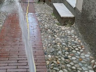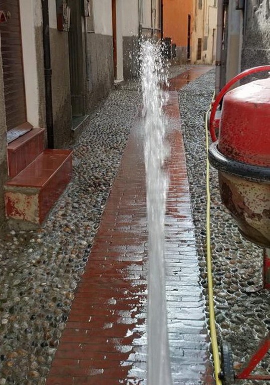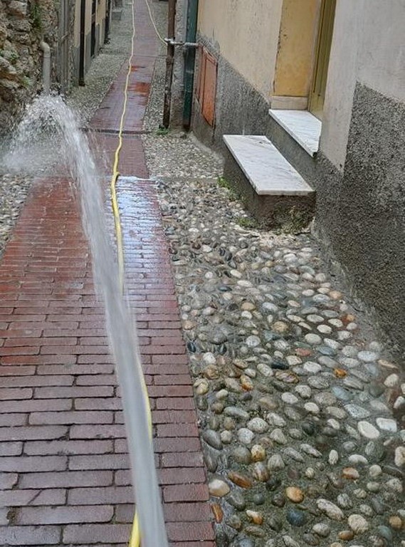 Prosegue il lavoro di pulizia nelle strade di Ventimiglia. Oggi pomeriggio gli operai del Comune frontaliero hanno lavato quelle del centro storico.