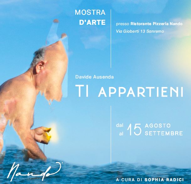 Prosegue il ciclo di mostre presso il ristorante pizzeria Nando di via Gioberti a Sanremo. Dopo il grande riscontro delle due precedenti esposizioni, questo sabato 15 agosto, dalle ore 17.30 alle 18.30, avrà luogo l’inaugurazione della personale di Davide Ausenda dal titolo “Ti appartieni”. L’evento è a cura di Sophia Radici, comunicatrice e conservatrice dei beni culturali di origini bergamasche.