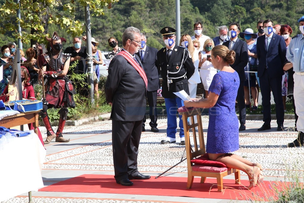 Grande festa questo pomeriggio a Seborga per il giuramento di Nina Menegatto, prima principessa nella storia del Principato. Davanti alla chiesa di San Bernardo e al popolo di Seborga la principessa ha prestato giuramento al Principato. Un momento ufficiale che sancisce l'investitura all'importante carica.
