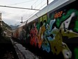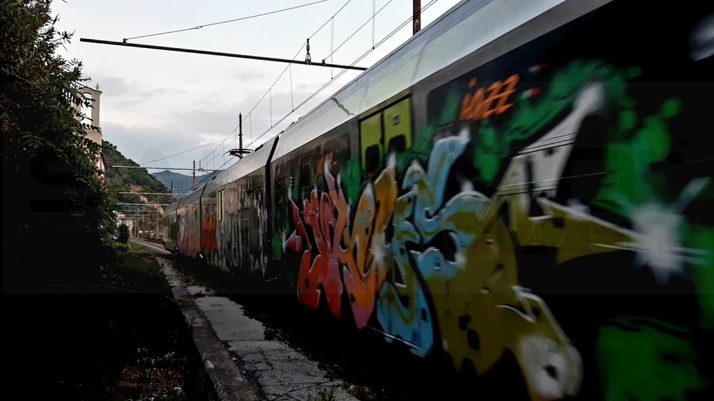 (Nelle foto, risalenti al 25 agosto, i convogli Jazz pesantemente graffitati a Albenga e Laigueglia)