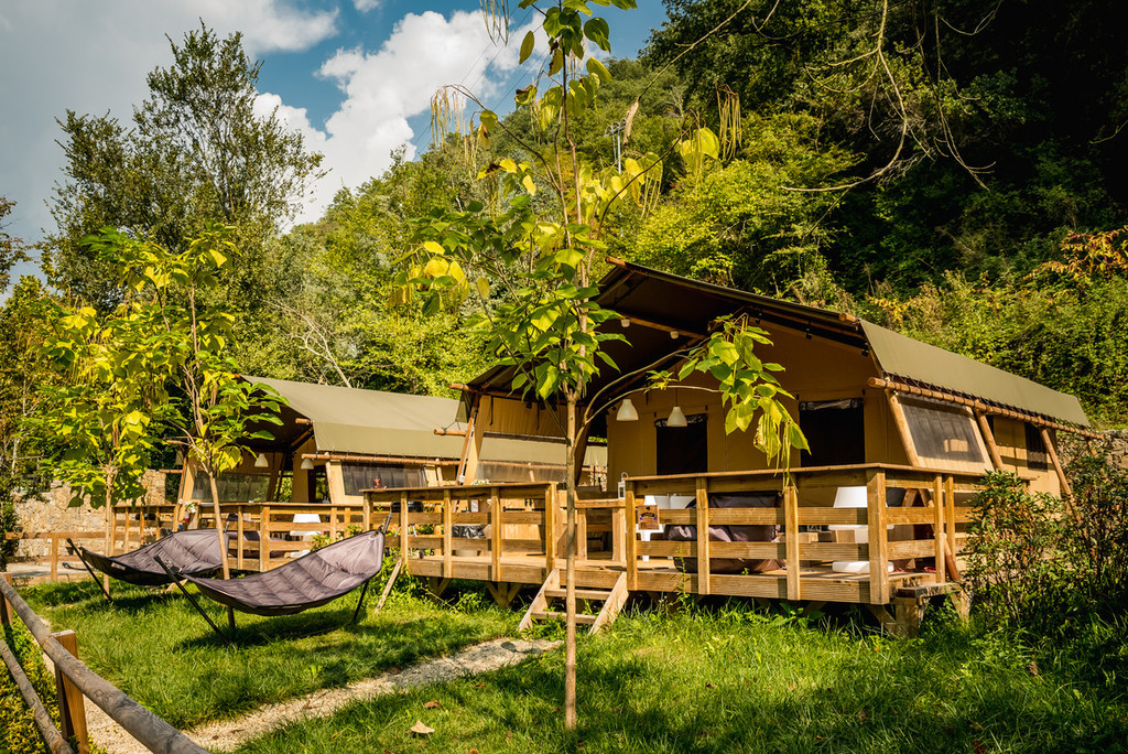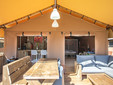 Pensate proprio in Africa per un turismo di lusso, ma all’interno di parchi naturali, le ritrovate qui. Le Tende Safari non sono solo spaziose e confortevoli, sono dotate di un letto matrimoniale, una camera da letto separata con letti singoli e un bagno privato con doccia. Hanno una terrazza arredata in legno con cucina esterna. Ogni tenda ha i suoi arredi da esterno per rendere la vita all'aperto ancora più piacevole. Gli spazi Safari osservano il campeggio dall’alto. Dotate di giardino e parcheggio, offrono sempre un panorama spettacolare. Da godere tutto il giorno.