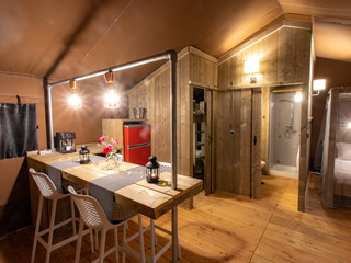 Pensate proprio in Africa per un turismo di lusso, ma all’interno di parchi naturali, le ritrovate qui. Le Tende Safari non sono solo spaziose e confortevoli, sono dotate di un letto matrimoniale, una camera da letto separata con letti singoli e un bagno privato con doccia. Hanno una terrazza arredata in legno con cucina esterna. Ogni tenda ha i suoi arredi da esterno per rendere la vita all'aperto ancora più piacevole. Gli spazi Safari osservano il campeggio dall’alto. Dotate di giardino e parcheggio, offrono sempre un panorama spettacolare. Da godere tutto il giorno.