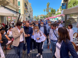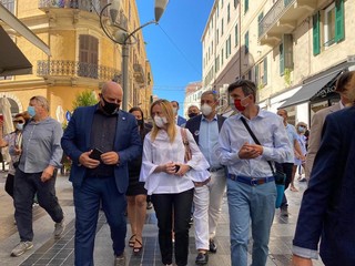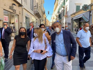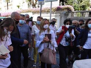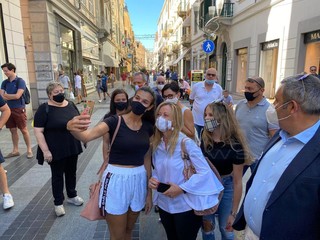 Giorgia Meloni si è concessa una passeggiata in centro Sanremo prima di recarsi al Bay, dove è in programma l'incontro per lanciare i candidati della provincia di Imperia impegnati nelle elezioni regionali del 20 - 21 settembre. La leader di Fratelli d'Italia, è partita dal Casinò e ha camminato tra cittadini e turisti. Immancabili i selfie con le numerose persone che l'hanno fermata.