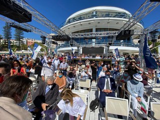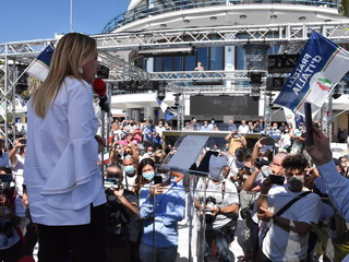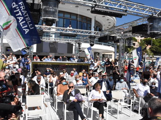 Dopo la passeggiata in centro a Sanremo, Giorgia Meloni è intervenuta al Bay per l'incontro pubblico di Fratelli d'Italia. Dal palco sul mare del noto locale matuziano, la leader del partito ha lanciato la campagna elettorale dei candidati per le elezioni in Liguria: Gianni Berrino, Massimiliano Iacobucci, Sara Serafini e Veronica Russo.