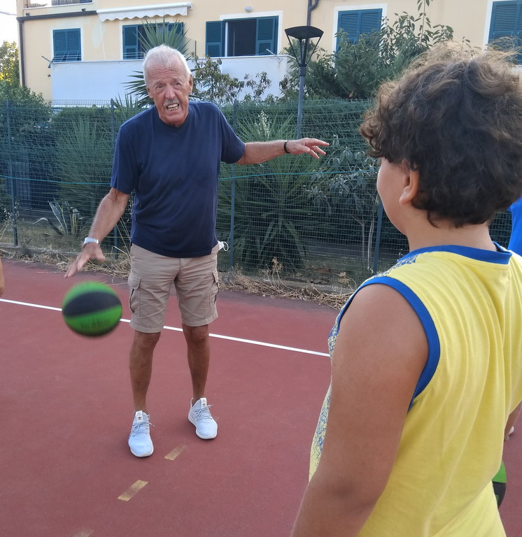 Nei giorni scorsi, al campo di basket a San Bartolomeo al Mare, c’è stato un incontro particolare tra cestisti di generazioni diverse. I piccoli del Blue Ponente Basket hanno avuto l'occasione di conoscere Aldo Ossola, anche se i bambini non sapevano chi fosse.