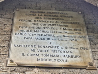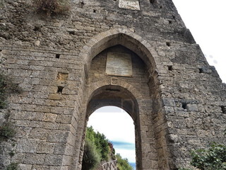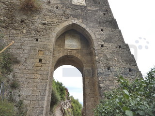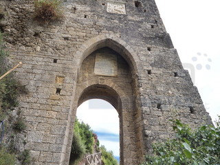 Sulla facciata quadrata ovest della torre spicca un bassorilievo in marmo con le armi dei conti di Ventimiglia, e, sempre sul lato ovest, una lapide ricorda il passaggio, sotto questa porta ad arco gotico, di illustri personaggi. Un sito storico, molto affascinante, ma forse poco valorizzato.