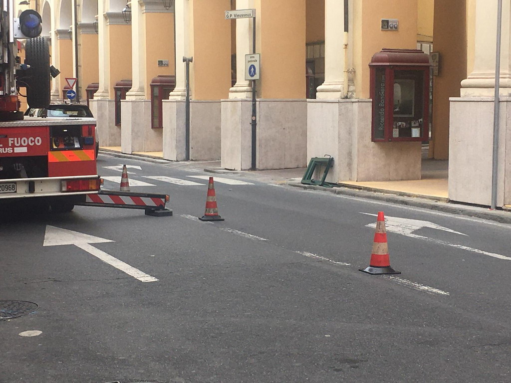 Imperia: per il vento cade una persiana in via Bonfante, intervento di Vigili del Fuoco e Polizia (Foto)