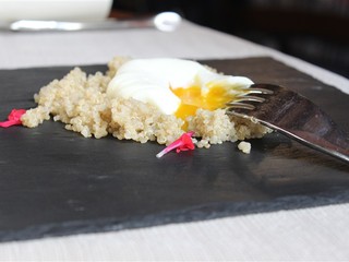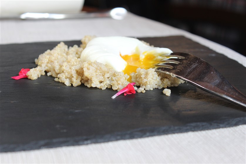 L’uovo in camicia su Quinoa e fiori di Salvia