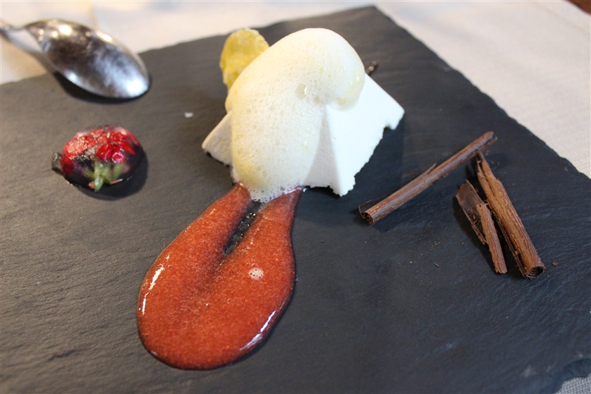 E gran finale con Bavarese alla Lavanda, cremble, aria di fiori di Arancio, petali di rosa brinati e gelatina di Verbena.
