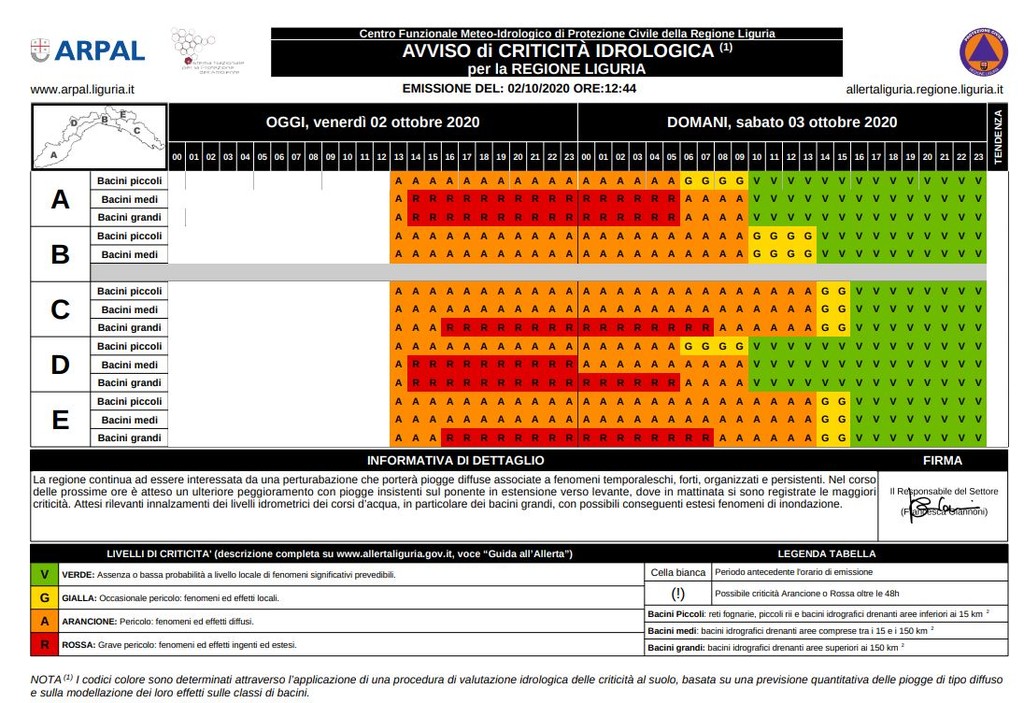 Piogge diffuse sono previste sulla nostra provincia, con cumulate fino a molto elevate, con intensità fino a forti su C, molto forti altrove.