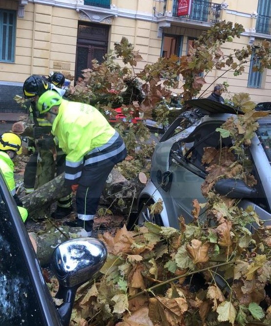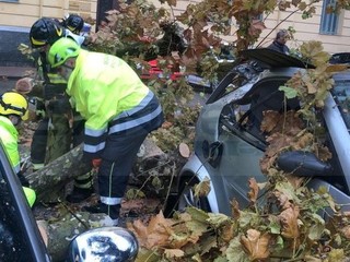 Ventimiglia: crolla sotto la forza del vento un platano in via Veneto, distrutta una Smart (Foto)