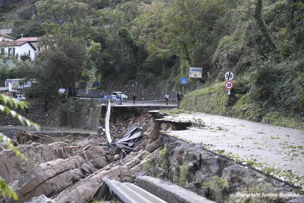 Il punto con i sindaci dei paesi. A breve dovrebbe essere creato un passaggio pedonale tra Badalucco e il bivio per Montalto. Isolata Triora e le sue frazioni, la strada è franata al bivio per Corte.