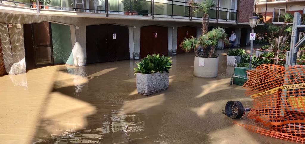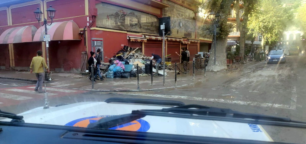 Anche una squadra della Protezione Civile di Sanremo prosegue il lavoro di rimozione del fango e dell'acqua dagli scantinati a Ventimiglia.