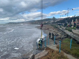 I Vigili del Fuoco di Sanremo sono intervenuti questa mattina sulla spiaggia di Santo Stefano al Mare per recuperare un grosso bombolone del gas portato dalle onde del mare.