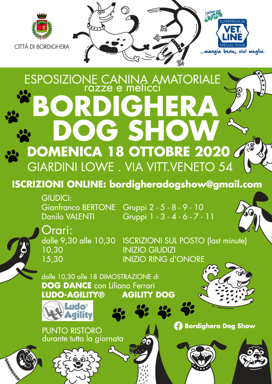 Per snellire file ed evitare assembramenti, come richiesto dalle misure anti-Covid,le iscrizioni si possono effettuare on-line all’indirizzo bordigheradogshow@gmail.com; si tratta, in realtà, di preiscrizioni, perché la scheda di partecipazione verrà consegnata domenica mattina, a fronte del pagamento della quota di iscrizione. E per i ritardatari, ci sarà ancora un’ora di tempo domenica mattina, dalle 9.30 alle 10.30 direttamente ai Giardini Lowe.