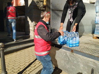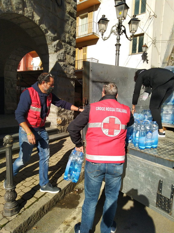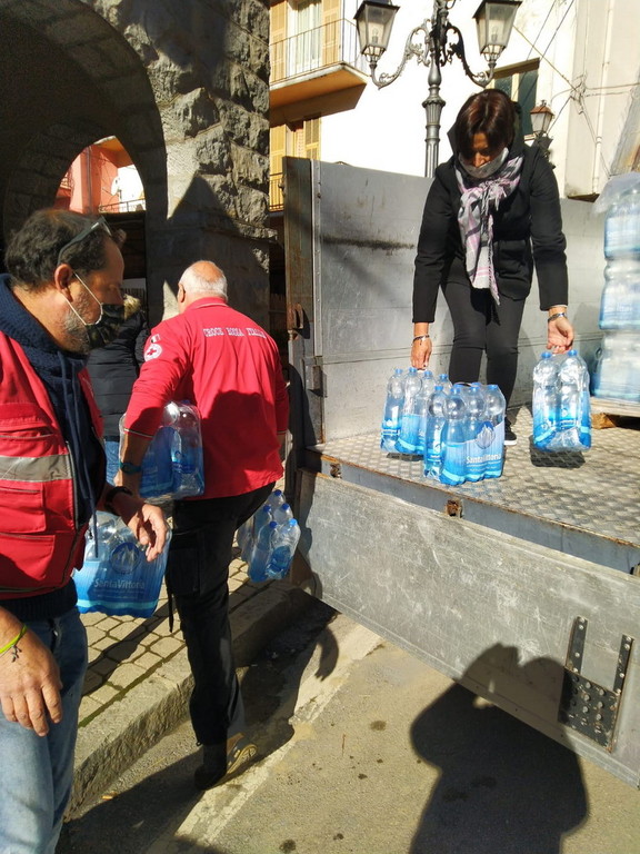Una colletta fra volontari per acquistare tre bancali d'acqua e alcune decine di chili di pasta per Molini di Triora. Un'idea nata da alcuni militi che in poche ore si sono organizzati e hanno comprato i viveri per gli abitanti che stanno passando questo momento difficile. Infatti in certe zone l'acqua scarseggia a causa dei danni provocati dalle frane. Ieri (sabato) i volontari della Croce Rossa di Sanremo accompagnati dal presidente Ettore Guazzoni hanno consegnato i viveri aiutati da alcuni abitanti del piccolo borgo.