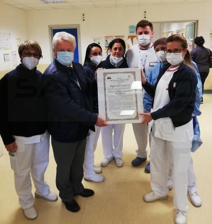“Ho voluto consegnare questo riconoscimento – ha detto Gaetano Scullino – per ringraziare, seppur in modo semplice, chi ogni giorno si prodiga per la salute di tutti. Il diploma è un segno di gratitudine per quanto viene fatto”.