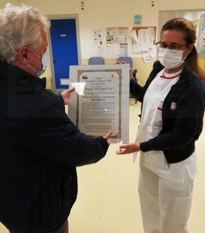 Il Sindaco di Ventimiglia ha consegnato i diplomi da 'Angeli del Covid' agli operatori degli ospedali di Sanremo e Bordighera