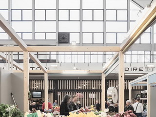“La mancanza di una visione strategica complessiva - evidenziano i progettisti - stava provocando la morte del Mercato Annonario. Siamo stati chiamati a risolvere questi grossi problemi programmando un intervento che sarebbe terminato in meno di quattro mesi per non compromettere la già difficile situazione economica degli operatori. Pertanto ogni scelta progettuale doveva adattarsi al rispetto di queste ipotesi. Il ridisegno e il riposizionamento planimetrico dei banchi riequilibrano i flussi distributivi del cliente e consentono di creare un quadrato coperto interno che contiene un piccolo caffè, panche e tavoli. La struttura tridimensionale in legno definisce un uso semplice e condiviso della regola dello spazio. Le tende per la chiusura dei banchi fissano il limite entro il quale l'operatore del mercato deve contenere scaffali, arredi e merce: durante l'orario di apertura la norma può essere trasgredita ed è consentita (entro certi limiti) lo sconfinamento. La sera, invece, devono essere chiusi. La struttura in legno dispone di tutti gli impianti antincendio, segnaletica e illuminazione”.