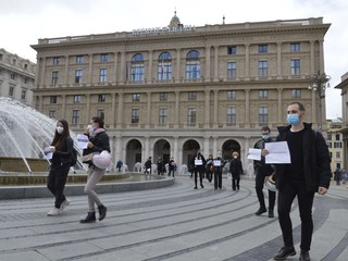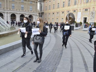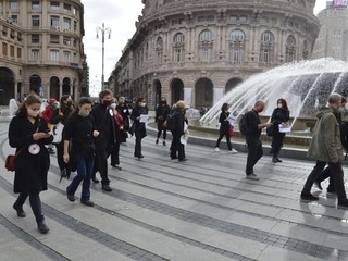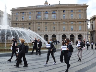 I lavoratori in piazza oggi, oltre che rivolgere un appello alle istituzioni affinché si prendano carico di mettere finanziariamente il settore in grado di sopravvivere, chiamano a raccolta da una parte i sindacati e le altre categorie produttive in difficoltà al fine di unire le forze per ottenere più attenzione da Governo, Regioni e Comuni: "Siamo qua innanzitutto perché diversamente che nel resto d'Italia in Liguria non è possibile manifestare, diritto che reclamiamo - spiega un lavoratore -. Abbiamo deciso questa iniziativa spontanea senza l'appoggio dei sindacati, ai quali chiediamo maggiore attenzione alle istanze dei lavoratori, per ricordare a istituzioni e cittadinanza come la nostra categoria abbia da subito messo in pratica tutele le misure necessarie per continuare a lavorare in sicurezza. Mentre la ristorazione è riuscita ad ottenere maggiore libertà di azione durante l'estate il nostro lavoro non è mai ripartito, ma ora che il coprifuoco colpisce le attività di somministrazione mi auguro ch le proteste non siano più settoriali. Io faccio sia il tecnico che il cameriere, e mi auguro che non si stia più chiusi nelle rivendicazioni che riguardano la propria categoria, ma che si lotti insieme avendo in mente il quadro d'insieme. Quest'emergenza sanitaria è diventata politica e sociale: vogliamo una riforma strutturale del settore dello spettacolo e della cultura. Non possiamo più accettare lo scarica barile politico fra i vari livelli di governo o fra la destra e la sinistra: vogliamo un dialogo vero oltre le fazioni e oltre le bandiere".