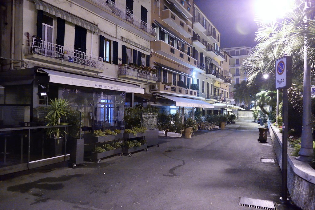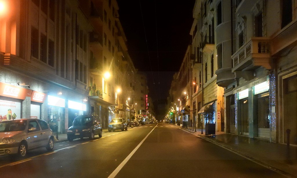 Non circolano auto e si possono notare solo alcuni ‘pony express’ che consegnano pizze e altri alimenti e poco altro. All’incrocio tra via Roma e corso Mombello una pattuglia della Polizia ferma alcuni giovani per un controllo mentre al Palafiori un clochard cerca di trascorrere la notte al riparo.