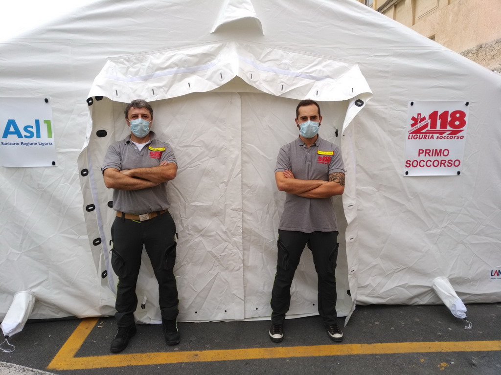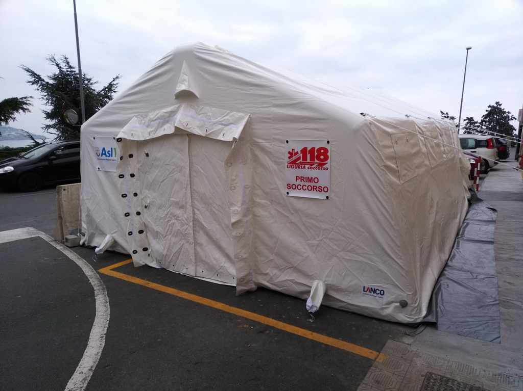 Sistemata la tenda pre-triage di fronte al pronto soccorso di Sanremo, domani un'altra a Imperia (Foto)