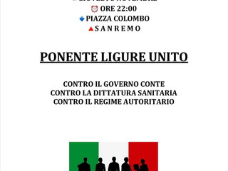 “Tali disposizioni – si spiega nel comunicato – limitano e opprimono in maniera ingiustificata le libertà dei cittadini, imponendo restrizioni e chiusure forzate alle attività commerciali. L'appuntamento contro la dittatura sanitaria, contro il regime autoritario, contro il governo Conte sarà per tutti in piazza Colombo, Giovedì 5 novembre alle ore 22.00”.