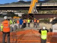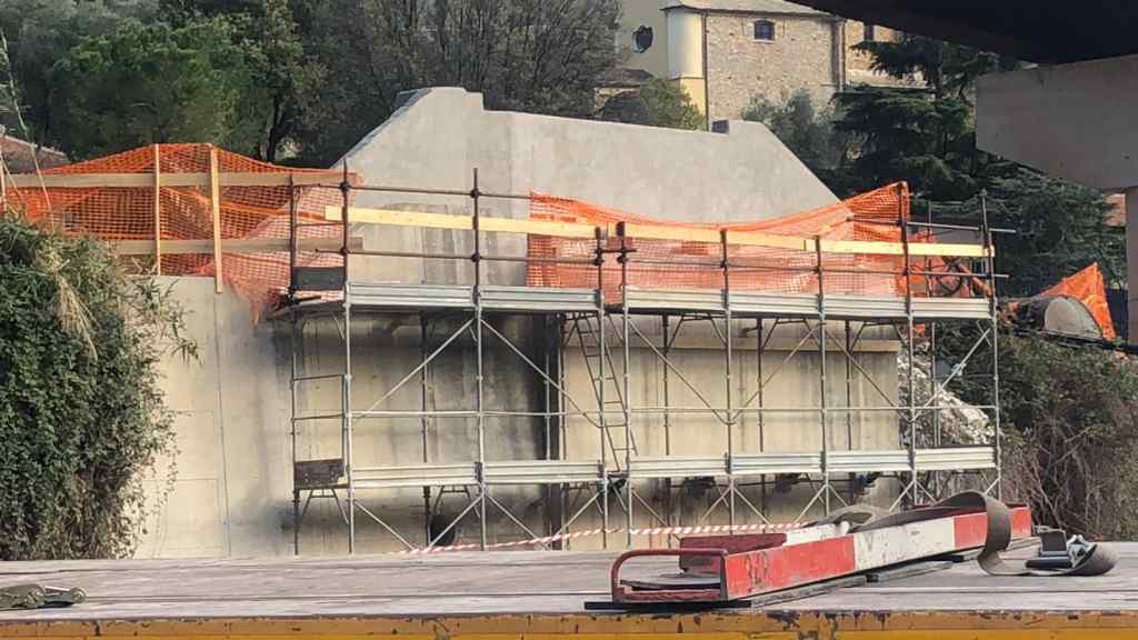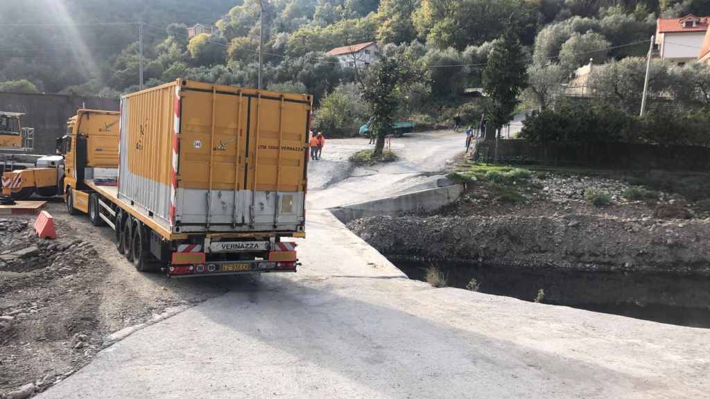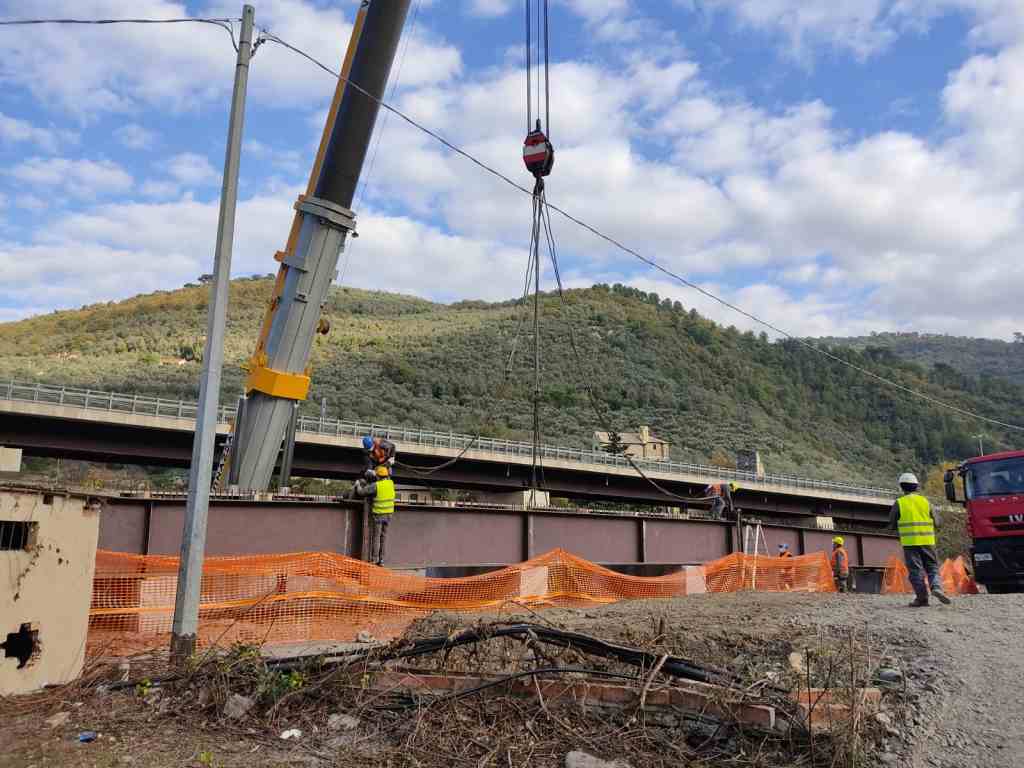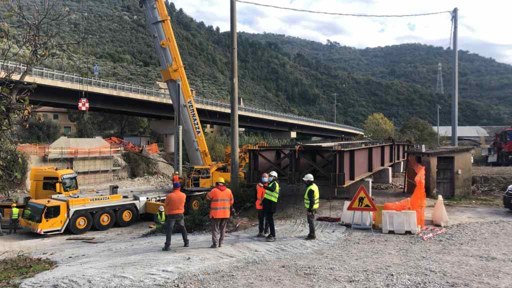 “Oggi viene montata l'impalcatura del ponte in acciaio, poi i lavori proseguiranno con la messa in opera di un solaio, delle barriere laterali di protezione, delle due rampette per salire e scendere dal ponte, quindi ancora un mesetto di lavori e poi dovremmo essere pronti per far transitare la prima auto”.
