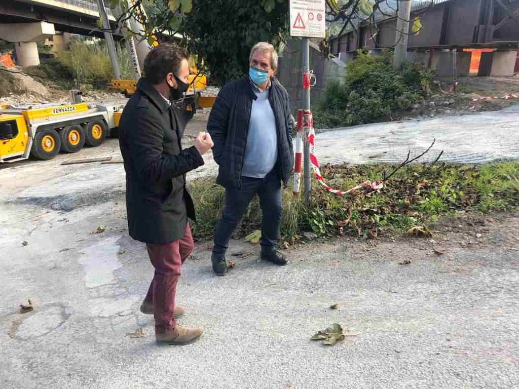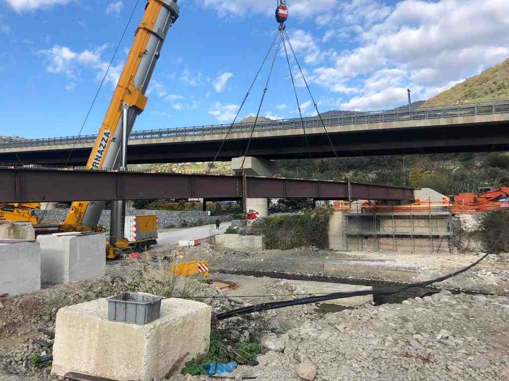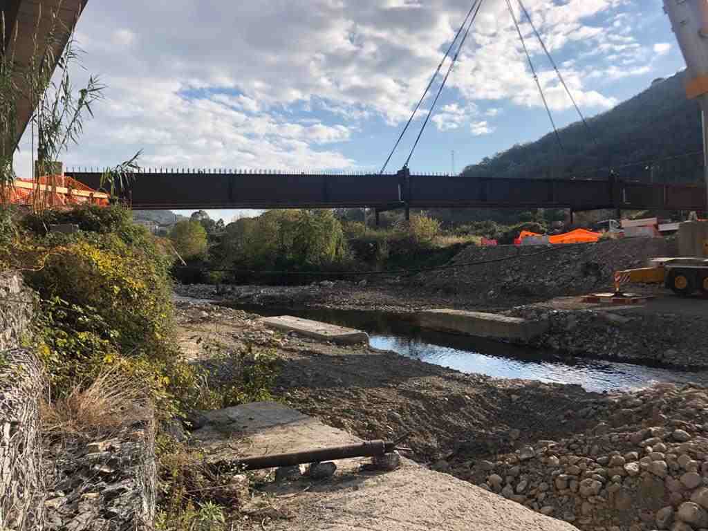 “Sì, è stata una situazione difficile perché a febbraio, quando si ha avuto la certezza del finanziamento e si è iniziata la progettazione e l'affidamento dei lavori alla ditta di Torino, che è una di quelle che ha buone capacità nella capacità di questo tipo di opera, in Italia le acciaierie stavano chiudendo, e quindi le travi sono state ordinate alla Arcelor Mittal in Inghilterra perché lì all'epoca le attività lavorative erano ancora aperte. Dopo circa un mese c'è stato comunicato che non sarebbero stati in grado di fornirci velocemente queste travi perché dovevano chiudere anche loro, e si è stabilito, per non perdere tempo fino a dopo il lockdown, che non sapevamo all'epoca quanto durava, di cambiare tipologia del ponte, perché l'unico stabilimento in Lussemburgo che continuava a lavorare ci avrebbe fornito il materiale per l'assemblaggio. Abbiamo recuperato i tempi, naturalmente alla ditta e ai progettisti durante il lockdown facevamo i permessi per poter venire sul cantiere e iniziare i lavori di consolidamento delle spalle necessari per poter sorreggere la nuova impalcatura”.