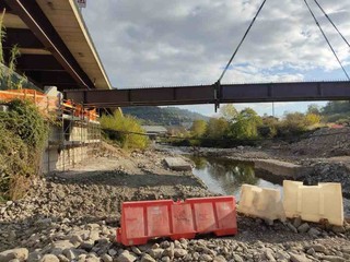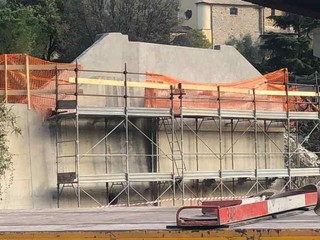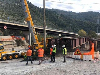 “Oggi viene montata l'impalcatura del ponte in acciaio, poi i lavori proseguiranno con la messa in opera di un solaio, delle barriere laterali di protezione, delle due rampette per salire e scendere dal ponte, quindi ancora un mesetto di lavori e poi dovremmo essere pronti per far transitare la prima auto”.