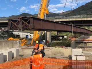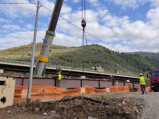 “Sì, è stata una situazione difficile perché a febbraio, quando si ha avuto la certezza del finanziamento e si è iniziata la progettazione e l'affidamento dei lavori alla ditta di Torino, che è una di quelle che ha buone capacità nella capacità di questo tipo di opera, in Italia le acciaierie stavano chiudendo, e quindi le travi sono state ordinate alla Arcelor Mittal in Inghilterra perché lì all'epoca le attività lavorative erano ancora aperte. Dopo circa un mese c'è stato comunicato che non sarebbero stati in grado di fornirci velocemente queste travi perché dovevano chiudere anche loro, e si è stabilito, per non perdere tempo fino a dopo il lockdown, che non sapevamo all'epoca quanto durava, di cambiare tipologia del ponte, perché l'unico stabilimento in Lussemburgo che continuava a lavorare ci avrebbe fornito il materiale per l'assemblaggio. Abbiamo recuperato i tempi, naturalmente alla ditta e ai progettisti durante il lockdown facevamo i permessi per poter venire sul cantiere e iniziare i lavori di consolidamento delle spalle necessari per poter sorreggere la nuova impalcatura”.