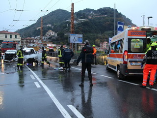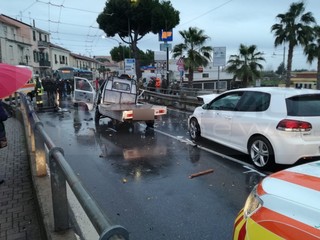 Camporosso: scontro tra due mezzi sul ponte del Nervia, un ferito grave e traffico paralizzato per un'ora (Foto)