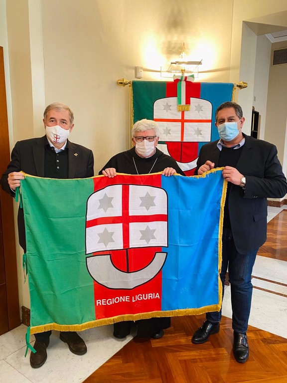 È stato inaugurato questo pomeriggio il tradizionale presepe di Regione Liguria. Il presepe è stato benedetto dall’arcivescovo di Genova Marco Tasca, accompagnato dal presidente di Giovanni Toti e dal sindaco di Genova Marco Bucci alla conclusione di un incontro nella sede dell’ente, in cui l’arcivescovo ha ricevuto in dono una bandiera di Regione Liguria.