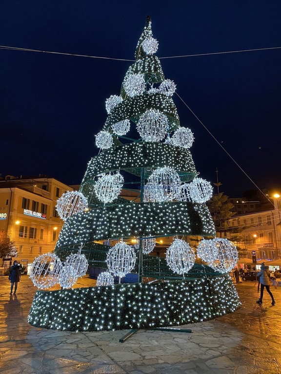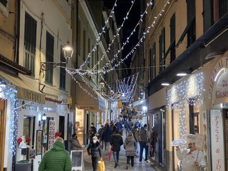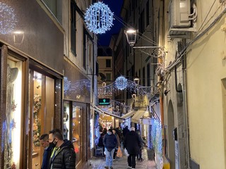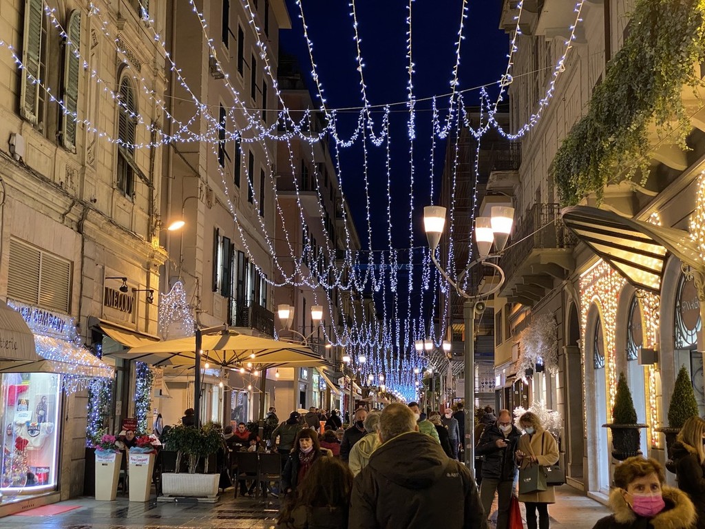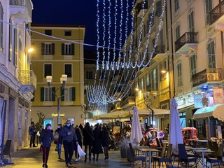 È un Natale sottotono per forza di cose, ma Sanremo no rinuncia allo spirito delle feste. E così questo pomeriggio, come da tradizione, per la prima volta si sono accese le luminarie che il Comune ha installato per le vie del centro e non solo.