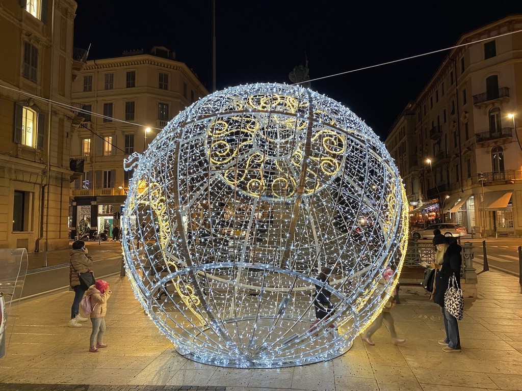 Ma le attrazioni luminose più fotografate sono, senza dubbio, il grande albero di piazza Colombo e le decorazioni giganti di corso Mombello: un orso dietro la statua della Primavera e una grande palla di Natale con tanto di ingresso per foto ricordo dall’interno. Senza dimenticare la scritta “Buone Feste” allo Zampillo.