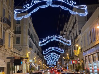 In via Matteotti e via Palazzo tradizionale ‘tappeto’ luminoso a coprire il fiume di persone che oggi si sono riversate in centro. Via Roma e le altre strade del centro sono invece sovrastate dai tradizionali archi colorati. Suggestive sfere, invece, per piazza San Siro.