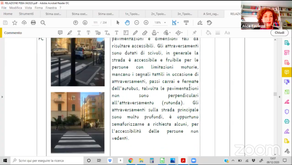 Galdi e Saviozzi hanno illustrato nel dettaglio le linee guida del Piano per l’Eliminazione delle Barriere Architettoniche. “Il Peba deve essere redatto in maniera partecipativa e a Sanremo è stato garantito attraverso la collaborazione continua con il comitato Peba per un confronto con le rappresentanze delle persone che più avevano fragilità dal punto di vista della fruibilità dello spazio - ha spiegato Valia Galdi - qual è il target della popolazione a cui è rivolto il piano? Il fruitore della città è una persona che può avere moltissime esigenze e con possibili difficoltà. Oltre a essere un valore culturale è anche un’opportunità legata al turismo e alla qualità della vita come marketing territoriale per garantire la permanenza delle persone. Nell’ultima parte del Peba si sottolineano le linee guida che possono essere applicate sia dagli uffici che dai privati nella realizzazione di opere. C’è poi il lavoro tecnico eseguito sul campo con analisi dello spazio pubblico e degli edifici che sono stati individuati e analizzati in base alle richieste dell’amministrazione: le scuole Italo Calvino, Castillo, Villa Vigo, il Palafiori, Museo Civico, il forte di Santa Tecla, l’auditorium Franco Alfano, l’autostazione dei bus e la stazione ferroviaria, il Mercato Annonario e alcune spiagge. Sono poi state redatte delle tipologie di soluzioni che possano essere esemplificative, mentre per gli edifici è stata fatta un’analisi puntuale con una relazione descrittiva”.