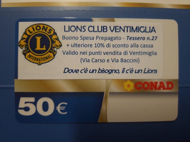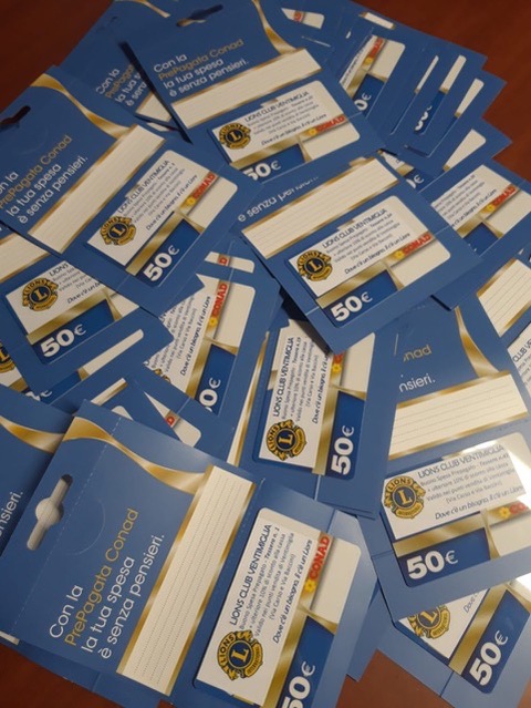 Sono cento le famiglie in difficoltà che sino ad oggi hanno ricevuto le tessere donate dal Lions Club Ventimiglia, del valore di cinquanta euro ciascuna, utilizzabili presso i supermercati Conad.