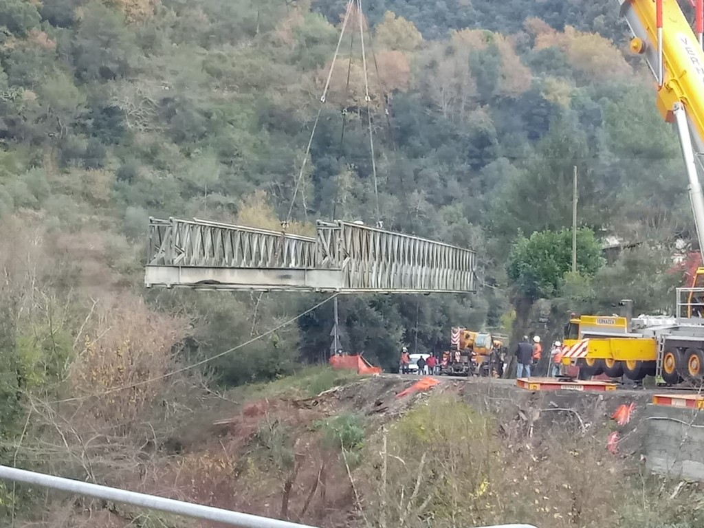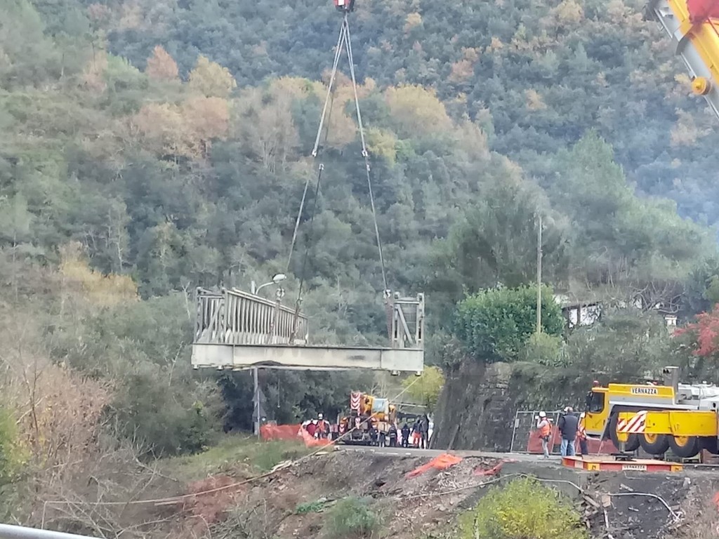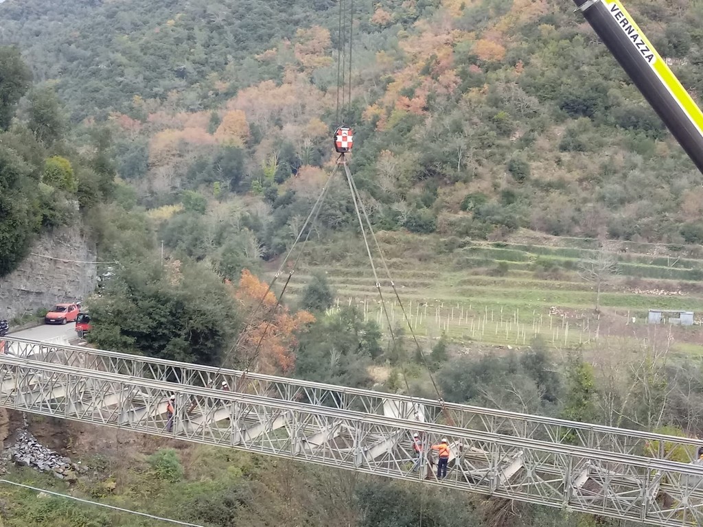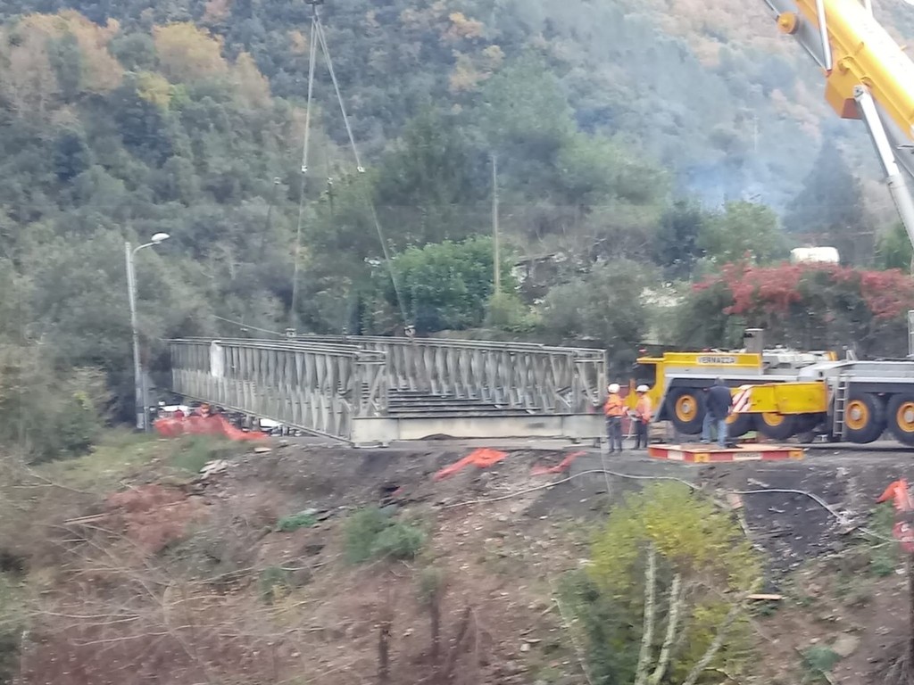 Rocchetta Nervina: rimosso il ponte che per quasi un anno ha consentito il transito sulla Provinciale 64 (Foto e Video)