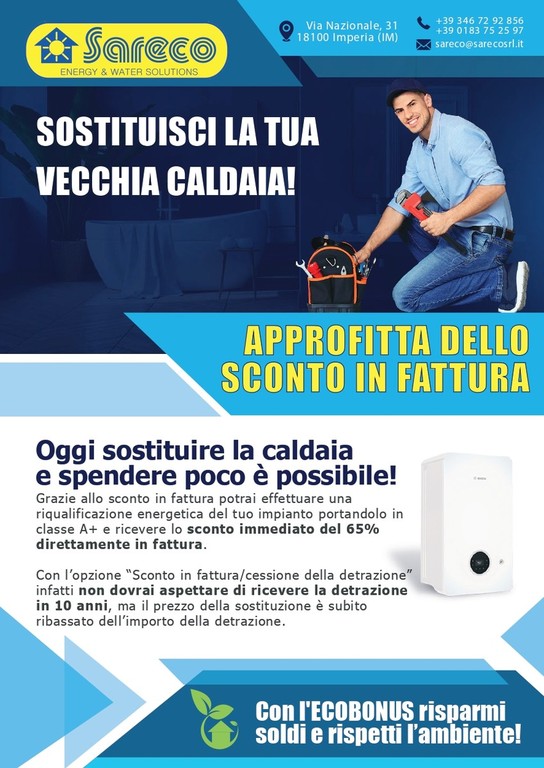 “Lo Stato italiano ha voluto dare un’accelerazione agli incentivi fiscali legati agli interventi atti al raggiungimento di un risparmio energetico degli edifici. È quindi possibile, cedere la detrazione fiscale al proprio fornitore (SARECO SRL) che, accettandola, tramuta la detrazione in uno sconto in fattura di pari importo alla detrazione ceduta”.