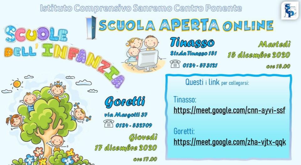 Le insegnanti della scuola dell’infanzia “M. Goretti” dell’Istituto Comprensivo 'Sanremo Centro Ponente' invitano i genitori dei bambini alla presentazione del plesso, attraverso la proiezione di un video nel quale verranno illustrate le proposte didattico-educative e nel complesso la realtà scolastica.