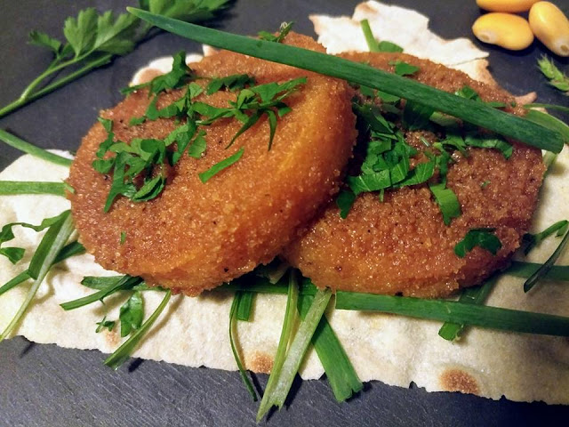 "Burger di zucca con cipolla egiziana ligure e pane Carasau"