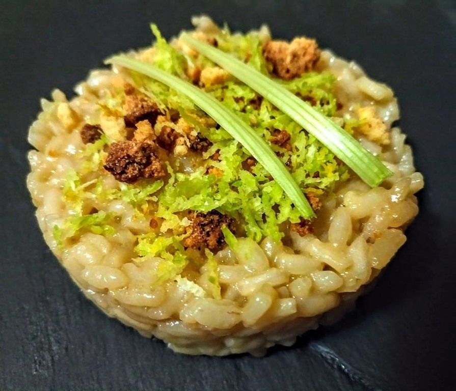 "Risotto cipolla egiziana ligure, amaretto e lime"