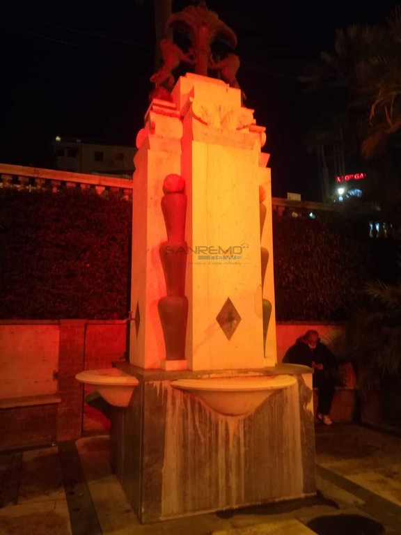 Per le feste Sanremo si colora anche nelle fontane. E così si riempie di luce anche la storica fontana di piazza Cesare Battisti, di fronte alla vecchia stazione ferroviaria, e il ficus di corso Imperatrice, nella zona della chiesa Russa.