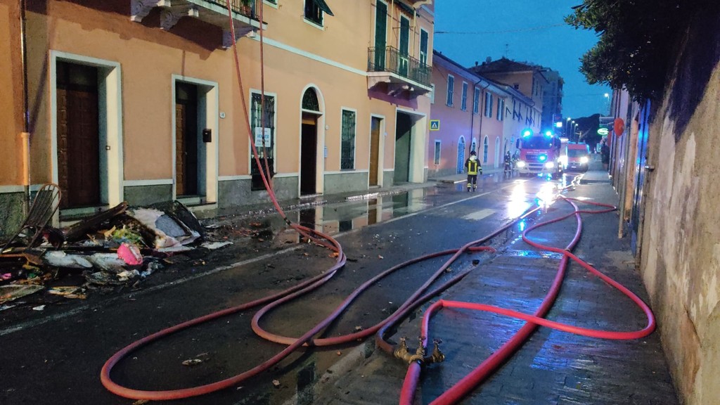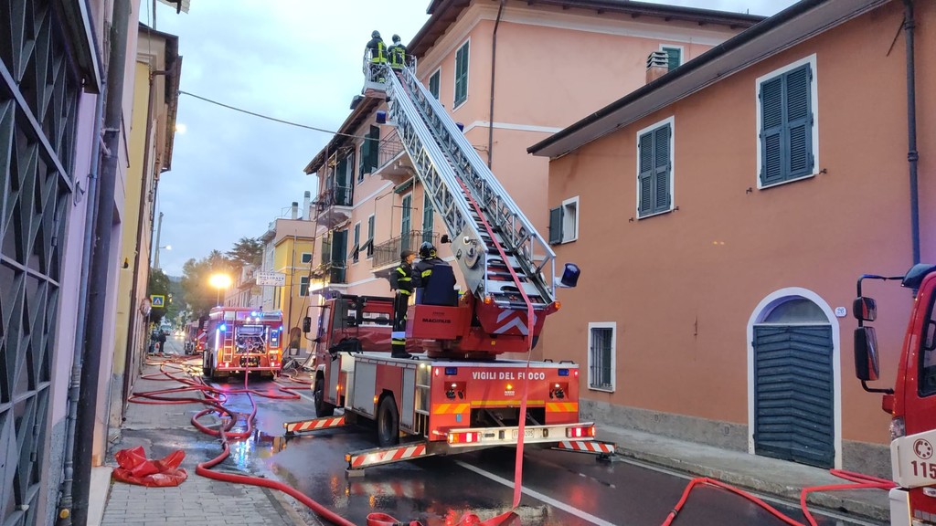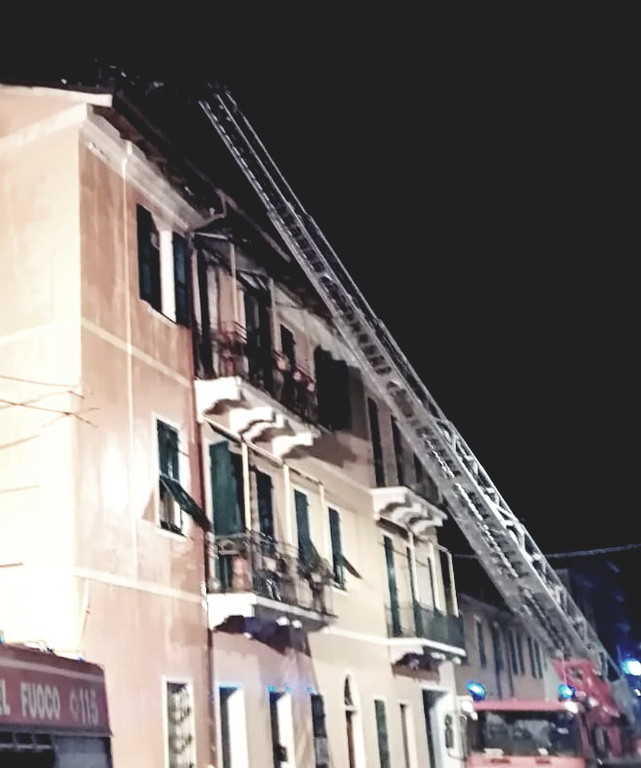Diano Marina: incendio su un terrazzo di via Generale Ardoino, intervento dei Vigili del Fuoco (Foto e Video)