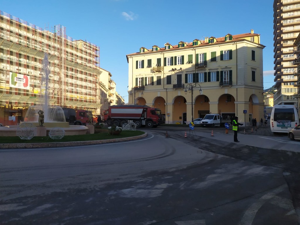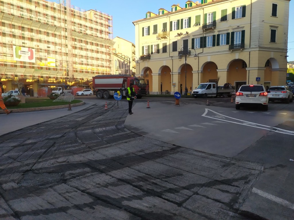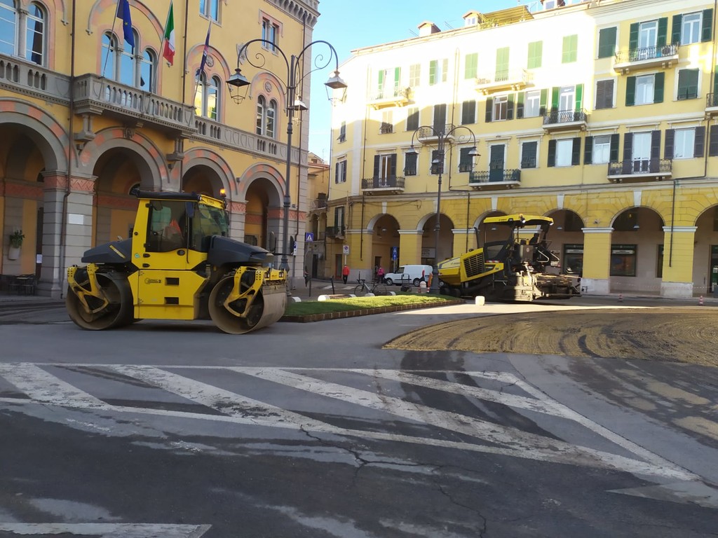 Termineranno oggi, così come previsto dall’ordinanza emanata dal Comune, i lavori di asfaltatura di piazza Dante. Le operazioni sono iniziate ieri e rientrano nella riqualificazione urbana del centro di Oneglia che ha visto già da oltre una settimana la riconsegna alla città dei lavori di restyling di via della Repubblica, via Bonfante e della fontana di piazza Dante.