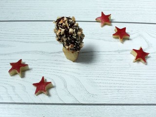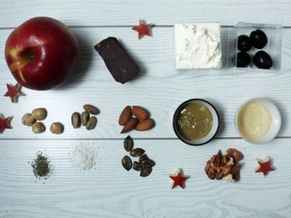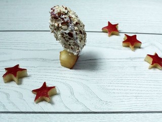 Ricoprite il 5° spicchio con: formaggio spalmabile e mandorle ridotte in granella